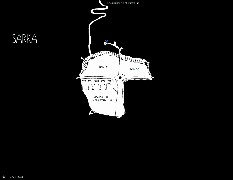 Sarka, gate of central keep, Klos 19th, 350AC, 10:15 (underground, 65 degrees, crescent moon)